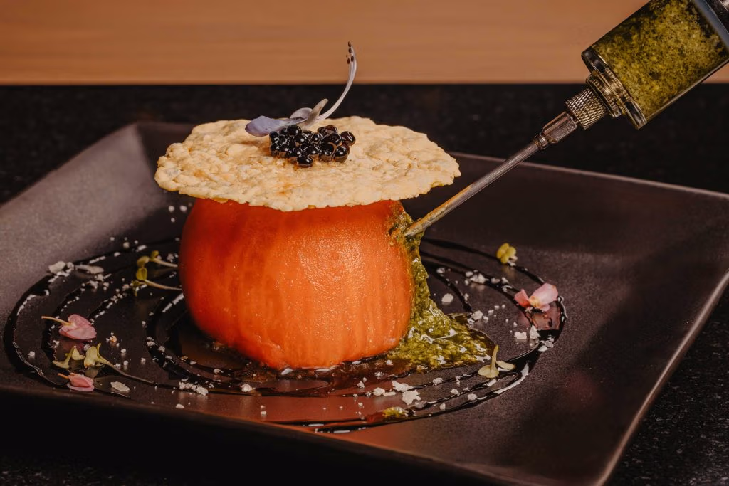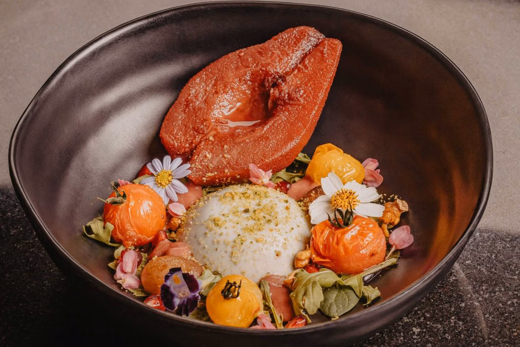 Served with cucumber granita and lemon zest